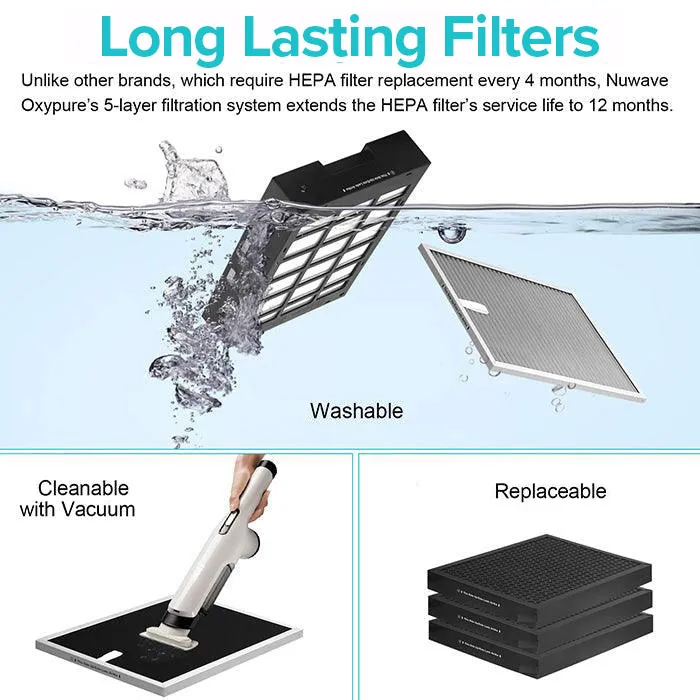 This single replaceable filter for the Nuwave OxyPure will last you for up to 1 year use.